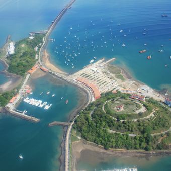 The Causeway Islands consist of four connected islands stretching 6 kilometers into the Pacific Ocean at the southern entrance of the Panama Canal.