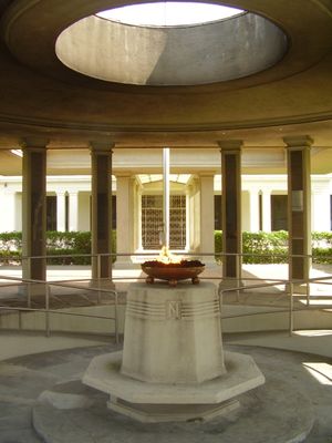 The memorial site includes an eternal flame added in 2008 and stands at the former location of Balboa High School on Ascanio Arosemena Avenue.