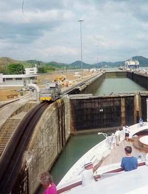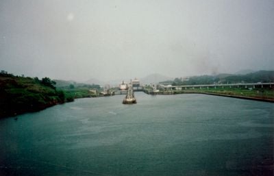 The Panama Canal stretches 82 kilometers across the isthmus, connecting the Atlantic and Pacific Oceans through a system of locks and lakes.