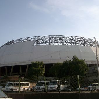 The circular structure with a steel dome reached 60 meters in height and accommodated 25,000 spectators at the border of Mexico City and Naucalpan.