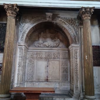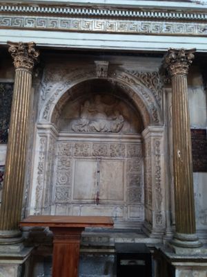 The monument remains accessible within San Miguel Arcangel Church, where visitors can examine its Renaissance architectural details and marble craftsmanship.