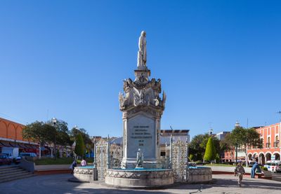 Multiple monuments within the plaza commemorate Mexican historical figures, including statues of Benito Juárez and Miguel Hidalgo.