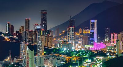 Monterrey is a large industrial city in northeastern Mexico, spreading across a wide valley surrounded by mountain ranges, with the saddle-shaped Cerro de la Silla rising above the skyline. The metropolitan area stretches across several neighboring municipalities, forming the third largest urban region in the country.
