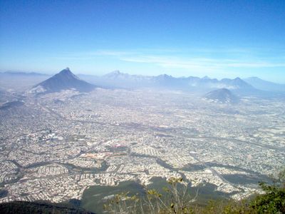 Monterrey extends across a valley flanked by mountains, including the Cerro de la Silla peak, forming the third largest metropolitan area in Mexico.