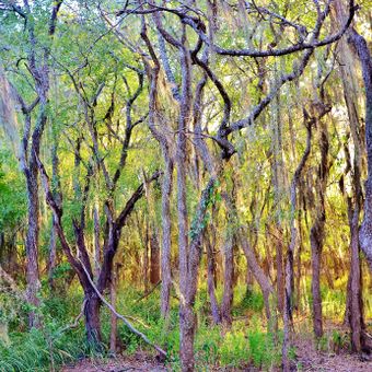 Santa Ana National Wildlife Refuge is a 2,088-acre preserve along the Rio Grande featuring multiple trails through subtropical wetlands and native vegetation. The landscape includes Spanish moss, diverse habitats, and open water areas that support different kinds of wildlife.