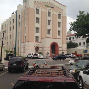 The Holiday Inn Express occupies a five-story brick building near the San Antonio River Walk, offering accommodations in the central district.