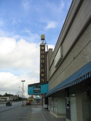 The Woodlawn Theatre features atmospheric architecture with 1,257 seats, designed by John Eberson to create the feeling of an outdoor space indoors.