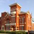 Richmond is a county seat on the Brazos River in Texas, spreading around a core of older buildings. The streets run in a regular pattern and lead to public squares, shops, and residential neighborhoods with trees along the roads.