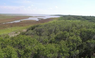 The Aransas National Wildlife Refuge section protects the winter residence of the world's only natural whooping crane population.