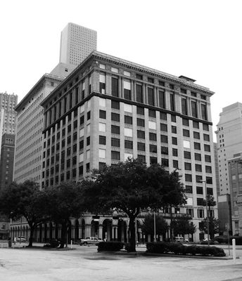 The building is located downtown Houston and retains its original appearance while accommodating modern business uses. Visitors can best appreciate the classical facade details from street level and the symmetrical design from different viewpoints around the structure.