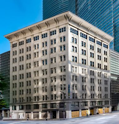 Following a 13 million dollar renovation, the building now houses retail spaces on lower floors and office condominiums on upper levels.