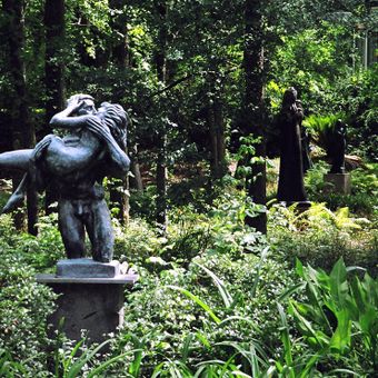 The six-acre garden displays over 50 bronze sculptures set among ponds, waterfalls, and native Texas plants near Barton Springs.