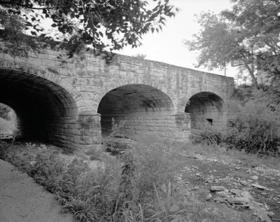 The West Sixth Street Bridge crosses Shoal Creek using three limestone arches and measures about 90 feet long. The structure connects neighborhoods on either side of the creek and continues to function as a major traffic route for cars, pedestrians, and cyclists.