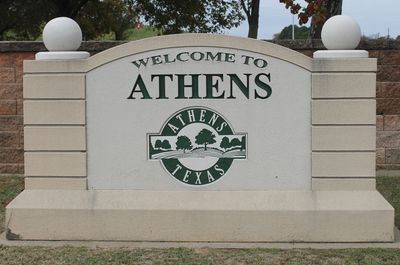 Athens is a city in Henderson County, Texas, located in a gently rolling landscape with diverse neighborhoods and local streets. The city includes schools, a community college, and the Texas Freshwater Fisheries Center as central gathering points for residents.