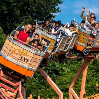 Riders between 36 and 54 inches tall can board with an adult companion, while solo riders must be at least 42 inches. The coaster sits in the Bugs Bunny Boomtown section, making it easy to locate when visiting other family attractions.