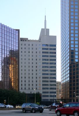 The building represents mid-20th century office architecture with its simplified forms, minimal ornamentation, and emphasis on vertical lines in downtown Dallas.