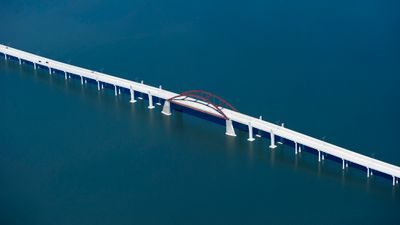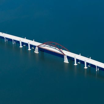 Construction of the bridge started in 2006 after years of planning, replacing an older connection that was removed in the 1950s during lake expansion.