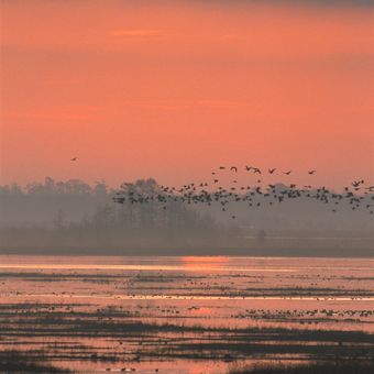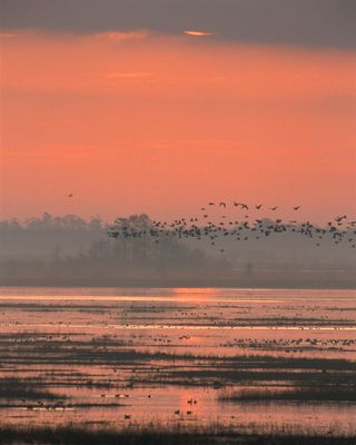 The refuge covers 35,000 acres of wetlands, prairies, and marshes where numerous waterfowl species find shelter during winter migrations.