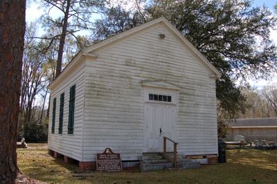 Located on South Bayou Black Drive, the church structure incorporates painted wood and whitewashed bricks instead of stone materials.