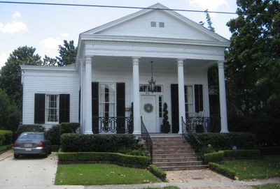 The James H. Dillard House features a single-story wood-frame design with a hip-roofed central section and a four-column neoclassical portico at 571 Audubon Street.