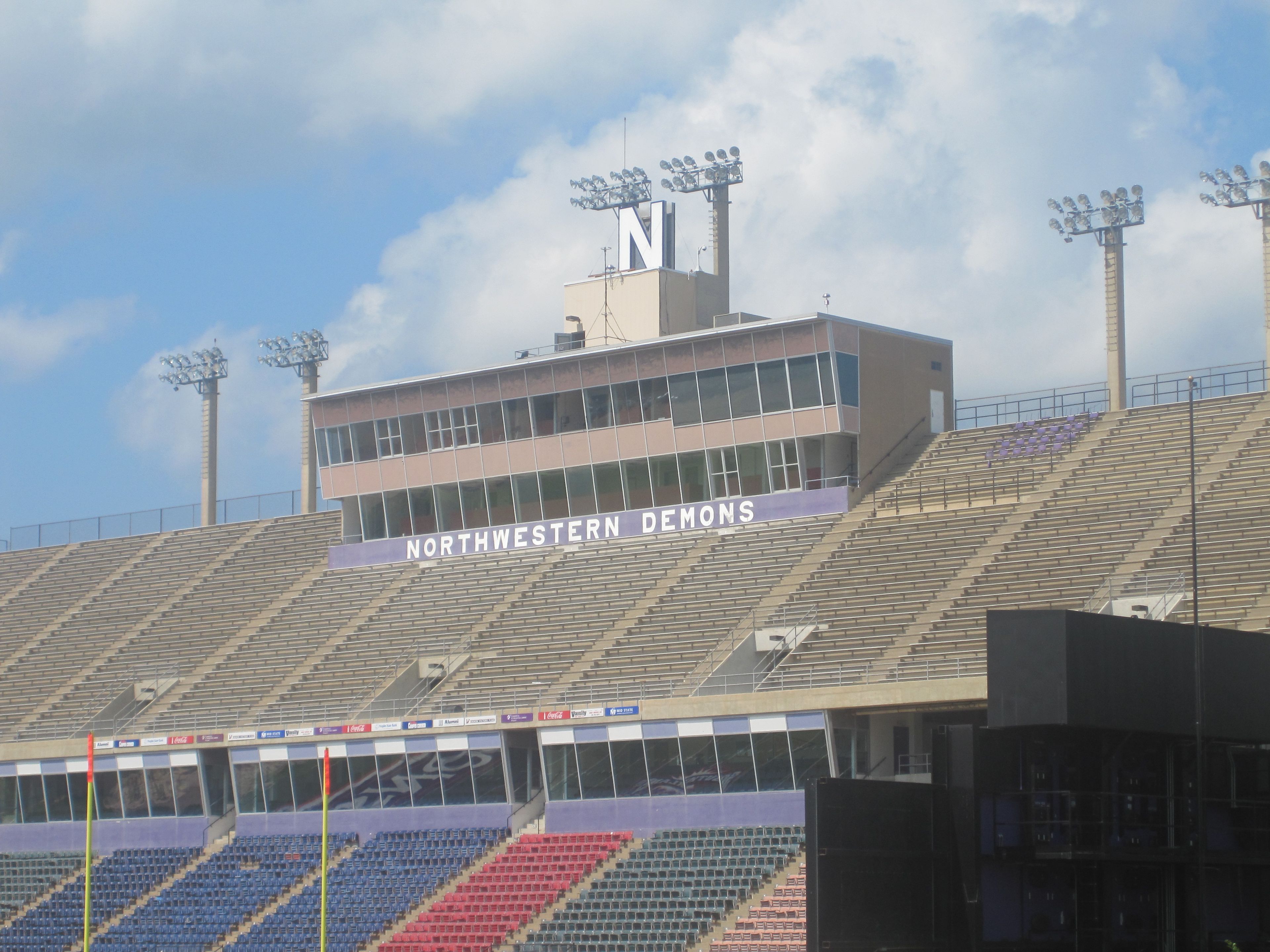 Harry Turpin Stadium contains 15,971 seats, a double-decked press box, working press areas, radio booths, and camera decks on its west side.