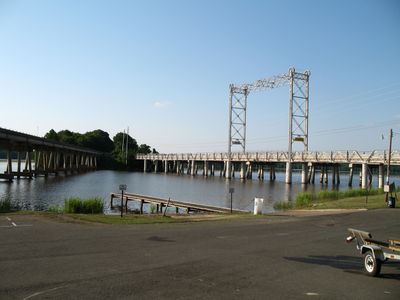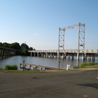 Caddo Lake Drawbridge, Vertical-lift bridge at Mooringsport, Louisiana.