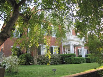 Balfour House is a two-story red-brick residence with symmetrical columns and large windows that display Greek Revival design characteristics. The carefully crafted facade and detailed architectural elements date from the early 1800s.