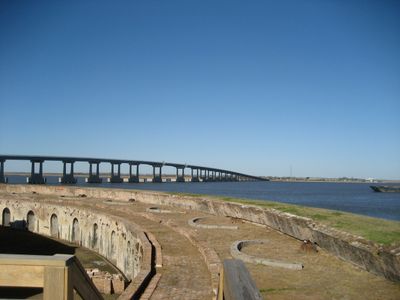 The bridge provides access to Fort Pike State Historic Site, which presents exhibits about military operations and coastal defense systems point.