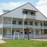 The Magnolia Hotel features a 2.5-story brick structure with a French Colonial Center Hall layout and a double-galleried wraparound porch supported by posts.