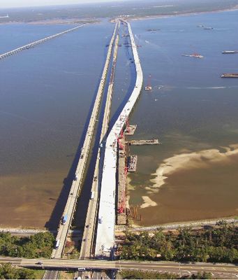 The original four-lane bridge from 1968 underwent complete reconstruction after Hurricane Ivan caused severe damage to 58 spans in 2004.