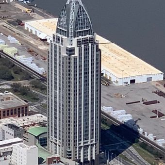 The RSA Battle House Tower rises 227.1 meters into the Alabama sky with 35 floors of office space and modern architectural elements.