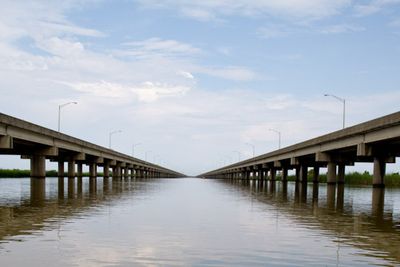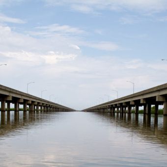 The Jubilee Parkway consists of two parallel concrete viaduct bridges stretching 12,875 meters across Mobile Bay, connecting Blakeley Island to Spanish Fort.