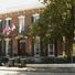 The Martin Horst House stands at 407 Conti Street, featuring classical symmetry, elaborate moldings, decorative brackets, and tall arched windows throughout its exterior design.