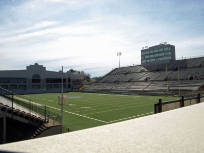 The Cramton Bowl features multi-tier seating arrangements across its structure, accommodating 25,000 spectators in a traditional American sports configuration layout.