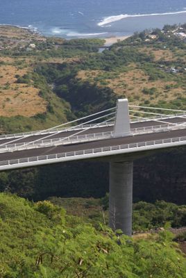 The viaduct carries traffic on a 22-meter wide roadway, reducing travel time between northwestern and southeastern parts of Reunion Island.