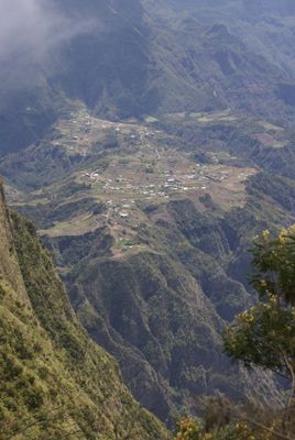 The hamlet stands at an elevation within the Cilaos cirque, surrounded by mountains and accessed through a winding mountain road on Réunion Island.