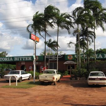 Located between Darwin and Kakadu National Park, this settlement experienced a failed agricultural experiment involving rice fields invaded by wild buffaloes.
