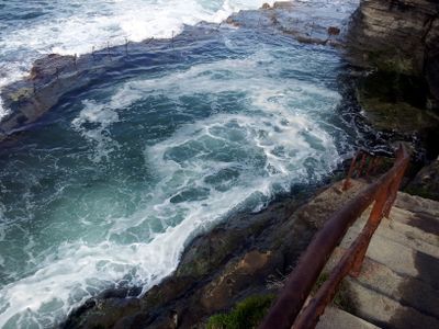 Carved into sandstone at the base of Shepherds Hill, this seawater pool measures approximately 1.5 meters in depth and receives direct water from ocean waves.