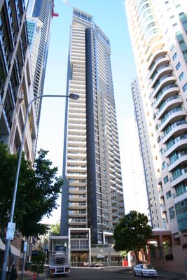 The Skyline Apartments building extends 150 meters into the Brisbane skyline with 47 floors containing 192 residential units and two penthouse apartments.