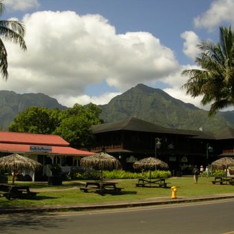 The town sits on the north shore of Kauai island, surrounded by mountains and positioned at the mouth of the Hanalei River.