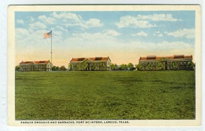 Fort McIntosh occupies land along the Rio Grande River, featuring Victorian architecture buildings including barracks, officers' quarters, and a parade ground.
