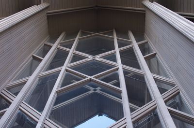 The structure functions as an instrument for natural light, creating shifting patterns through its architectural elements as the sun moves across the sky.
