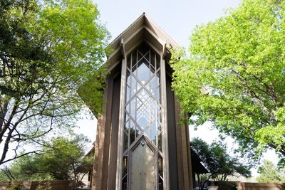 The chapel, designed by E. Fay Jones, represents Fort Worth's architectural excellence alongside works by Philip Johnson, Louis Kahn, and I.M. Pei.