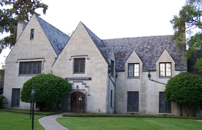 The Masur Museum of Art occupies a modified Tudor style building constructed with Indiana limestone and Pennsylvania blue slate along the Ouachita River.