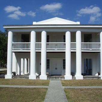 Major Robert Gamble constructed this Greek Revival residence between 1845 and 1850, establishing a 3,500-acre sugar plantation worked by over 200 enslaved people.