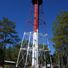 The iron and steel skeletal tower reaches 103 feet in height and contains 128 winding steps leading to a circular viewing platform.