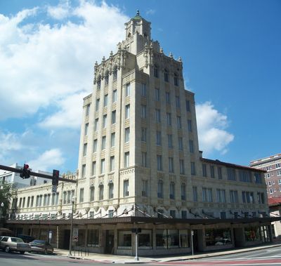 The Snell Arcade stands at 405 Central Avenue, featuring architectural elements from the 1920s with residential units and commercial spaces inside the structure.