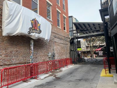 Jannus Live is a music venue in Downtown St. Petersburg featuring an outdoor central courtyard designed for live performances with capacity for around 2000 standing spectators. The space offers unobstructed views of the stage from various positions and provides multiple beverage service areas throughout.