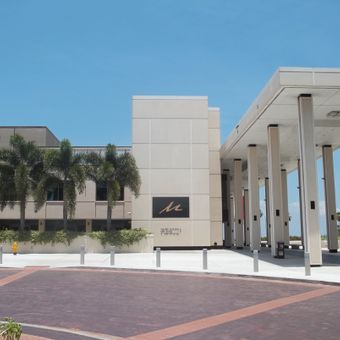 Mahaffey Theater is a concert hall and performing arts center in downtown St. Petersburg overlooking the waterfront with 2031 seats arranged in European box-style seating. The building includes additional spaces such as a ballroom and a restaurant, creating a full cultural venue along the waterfront district.