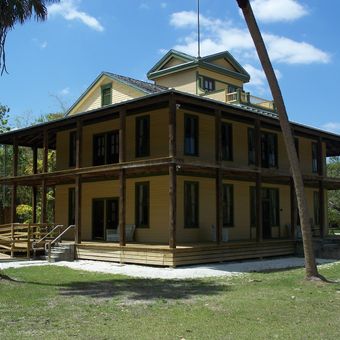 The 135-acre state park contains 11 restored buildings, botanical gardens, and natural areas along the Estero River in southwest Florida.